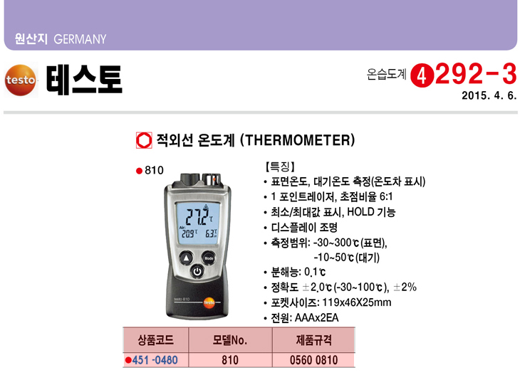 [Å×½ºÅä] TESTO Àû¿Ü¼± ¿Âµµ°è(810, 0560 8010, ´ë±â:-10~50¡É, Ç¥¸é:-30~300¡É)(Infrared Thermometer)(ÁÖ¹®Àü Àç°íÈ®ÀÎ)