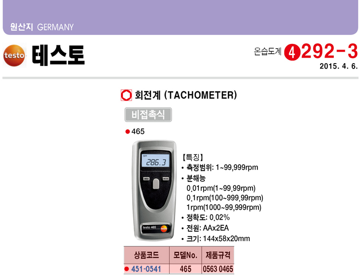 [Å×½ºÅä] TESTO ȸÀü°è/ŸÄÚ¹ÌÅÍ(465, 0563 0465, 1~99999RPM, ºñÁ¢Ã˽Ä)(Tachometer)(ÁÖ¹®Àü Àç°íÈ®ÀÎ)