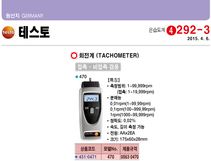 [Å×½ºÅä] TESTO ȸÀü°è/ŸÄÚ¹ÌÅÍ(470, 0563 0470, 1~99999RPM, Á¢ÃË/ºñÁ¢ÃË½Ä °â¿ë)(Tachometer)(ÁÖ¹®Àü Àç°íÈ®ÀÎ)