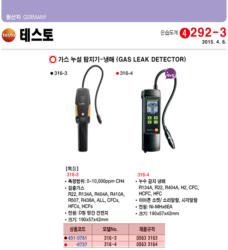 [Å×½ºÅä] TESTO ³Ã¸Å°¡½º ´©Ãâ ŽÁö±â(316-3, 0563 3163, ÇÁ·Îºê Á¦°ø)(Gas Leak Detector)(ÁÖ¹®Àü Àç°íÈ®ÀÎ)