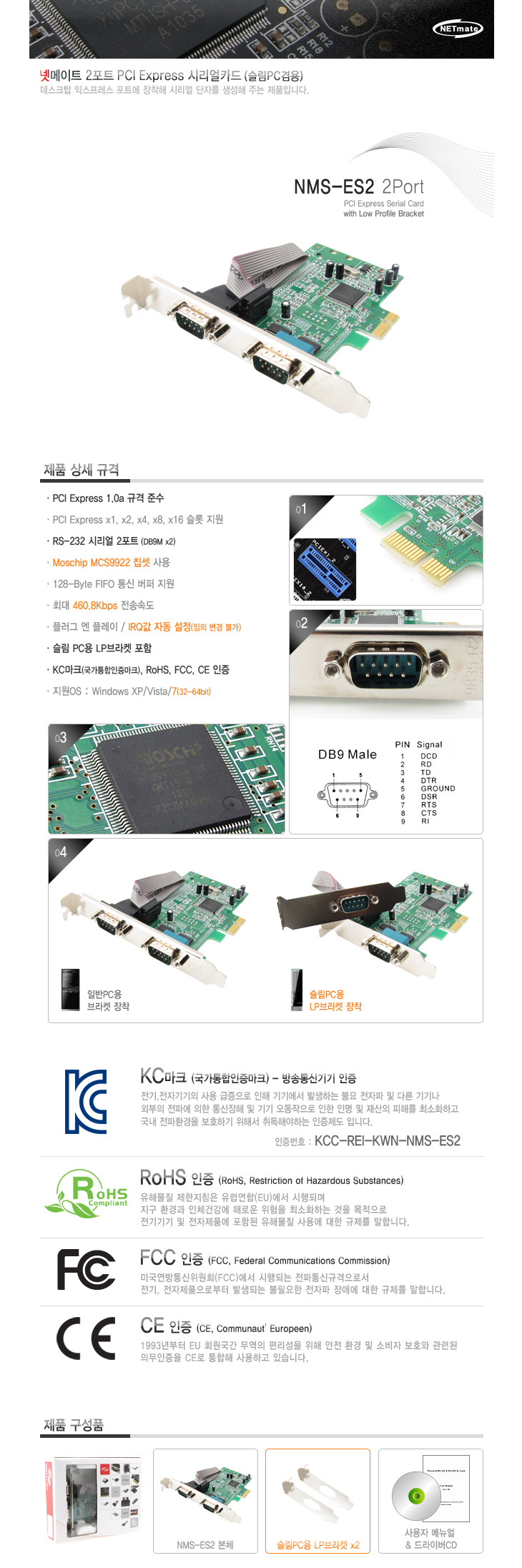 [³Ý¸ÞÀÌÆ®/KW] NETmate RS-232C 2Æ÷Æ® PCI Express ½Ã¸®¾óÄ«µå(NMS-ES2, DB9Mx2, Moschip MCS9922 Ĩ¼Â, ½½¸²PC°â¿ë)