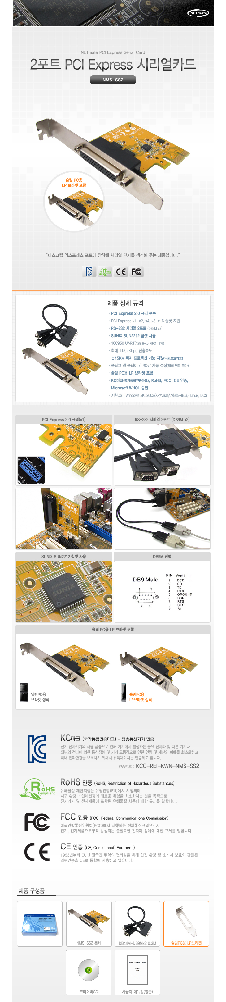 [³Ý¸ÞÀÌÆ®/KW] NETmate RS-232C 2Æ÷Æ® PCI Express ½Ã¸®¾óÄ«µå(NMS-SS2, DB9Mx2, SUNIX SUN2212 Ĩ¼Â, ½½¸²PC°â¿ë)