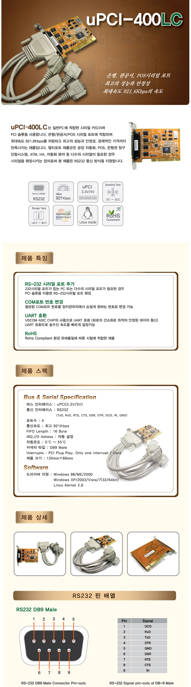 [VSCOM] RS-232C 4Æ÷Æ®(uPCI-400LC, PCIÄ«µå ÄÉÀ̺íŸÀÔ ¸ÖƼÆ÷Æ®)