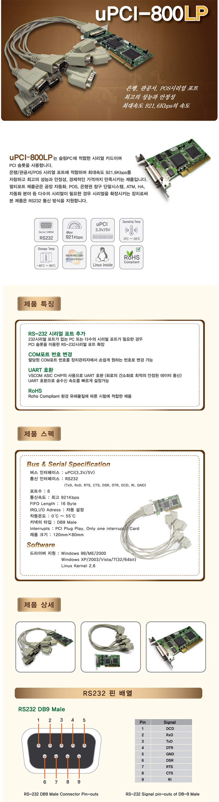 [VSCOM] RS-232C 8Æ÷Æ®(uPCI-800LP, PCIÄ«µå ÄÉÀ̺íŸÀÔ ¸ÖƼÆ÷Æ®, ½½¸²PC¿ë)