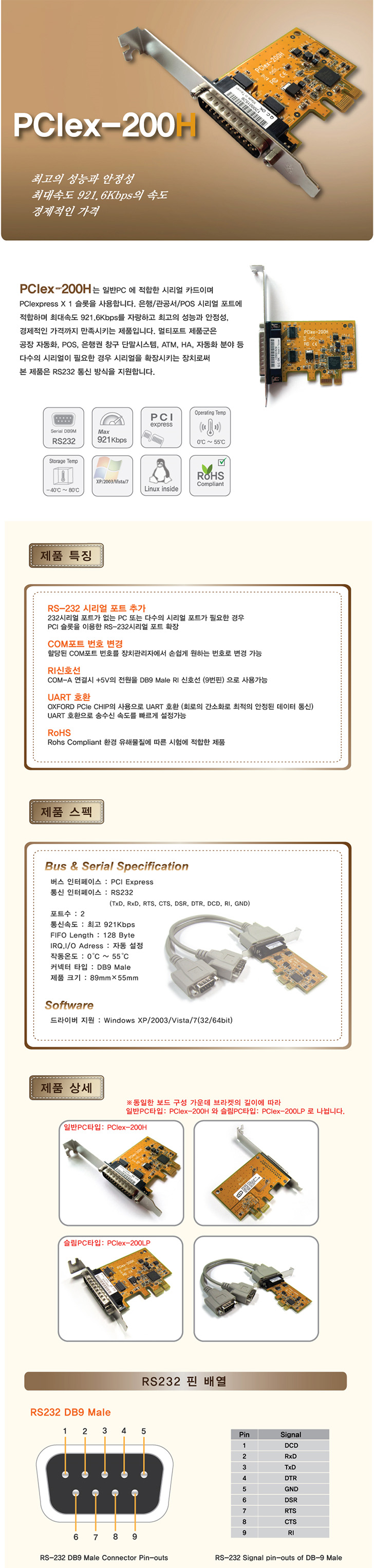 [VSCOM] PCI Express RS-232C 2 Æ÷Æ®(PCIex-200H, ÄÉÀ̺í ŸÀÔ ¸ÖƼÆ÷Æ®)