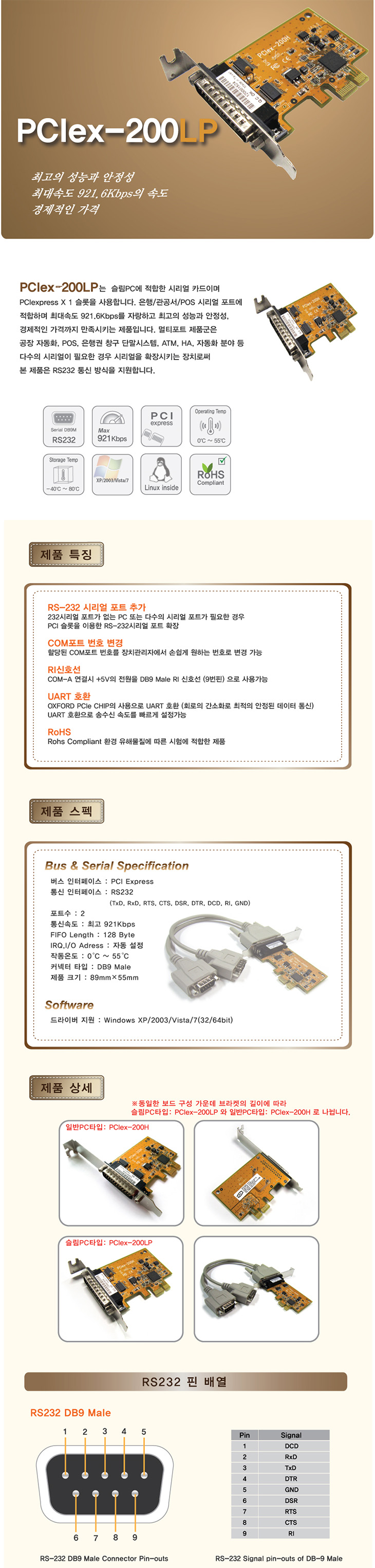 [VSCOM] PCI Express RS-232C 2 Æ÷Æ®(PCIex-200LP, ÄÉÀ̺í ŸÀÔ ¸ÖƼÆ÷Æ®, ½½¸²PC¿ë)