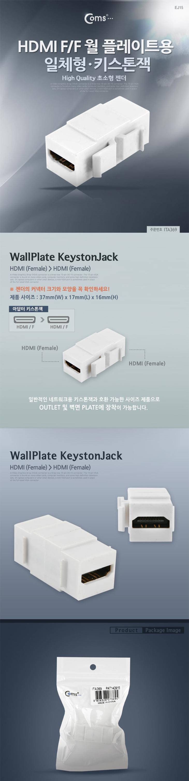 [COMS] º®¸éºÎÂø PLATE/HDMI ¿ù Ç÷¹ÀÌÆ®¿ë ¿¬°á(ITA369, F/F 1Æ÷Æ®, ÀÏüÇü/Ű½ºÅæÀè)