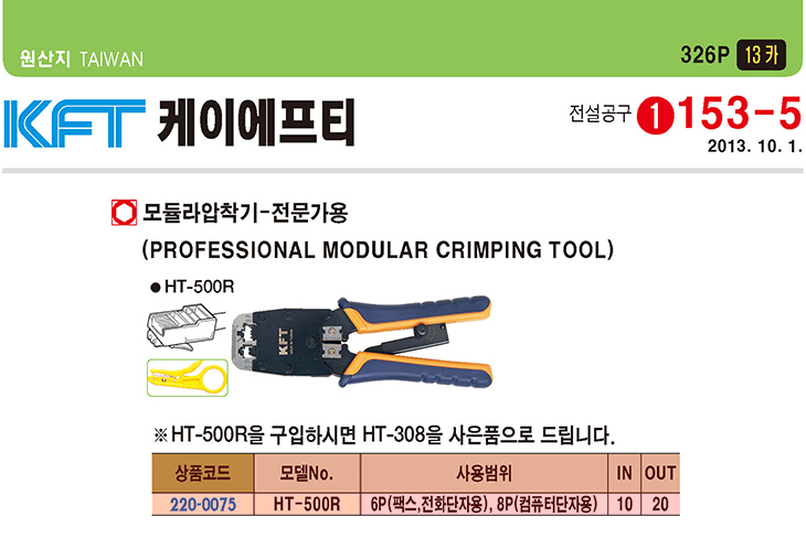 [KFT] ¸ðµâ·¯¾ÐÂø±â(HT-500R, Àü¹®°¡¿ë, 6P:ÆÑ½º/ÀüÈ­´ÜÀÚ¿ë, 8P:ÄÄÇ»ÅÍ´ÜÀÚ¿ë)(MODULAR CRIMPING TOOL)