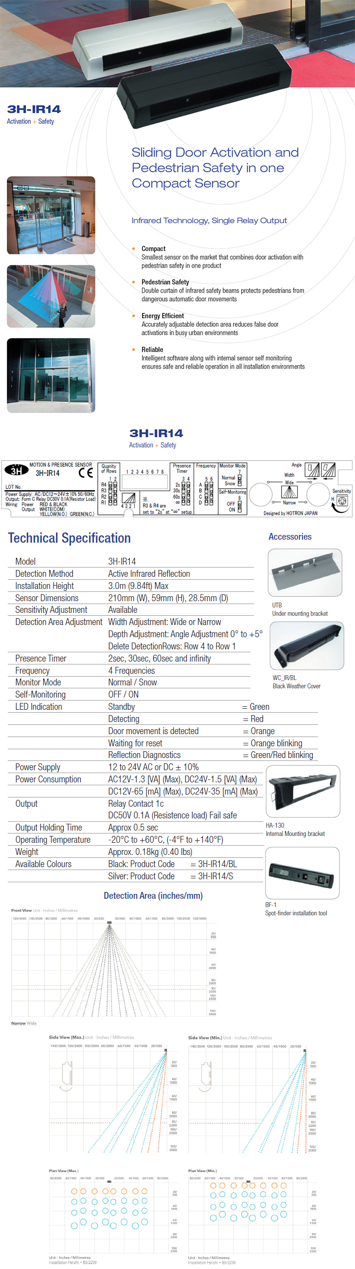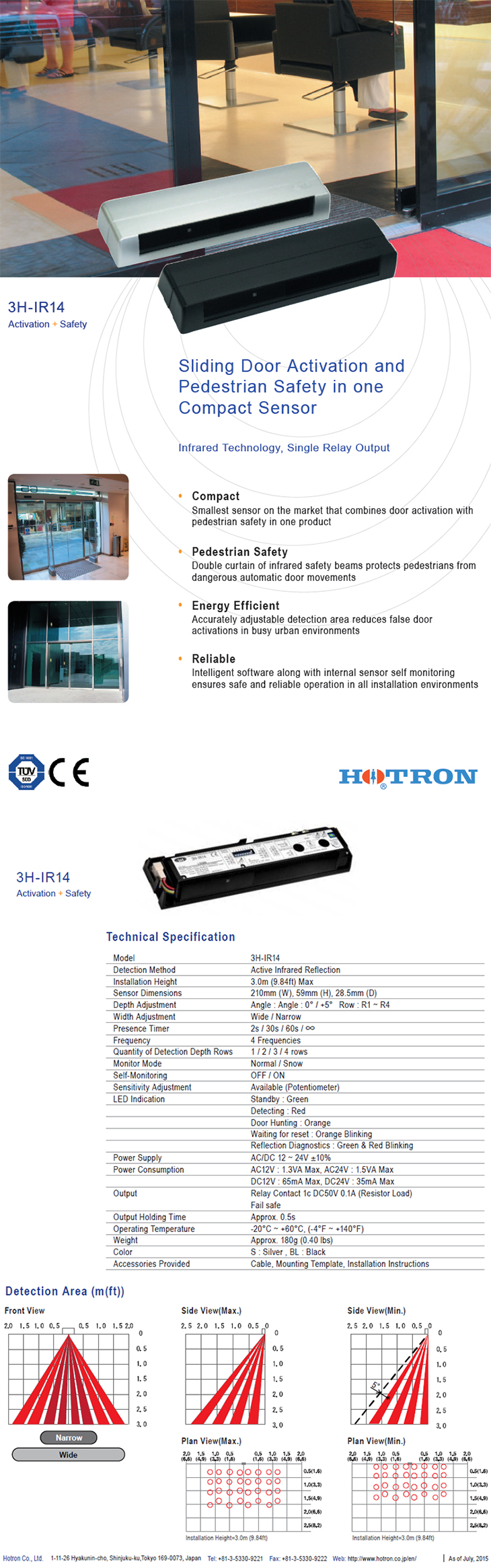 [HOTRON/ȣƮ·Ð] ¾ÈÀü Àû¿Ü¼± ¼¾¼­(3H-IR14, 3¹ÌÅÍ ³ôÀÌ, HR-942D/HR-941-4K´ëü°¡´É)(Sliding Door Activation and Pedestria