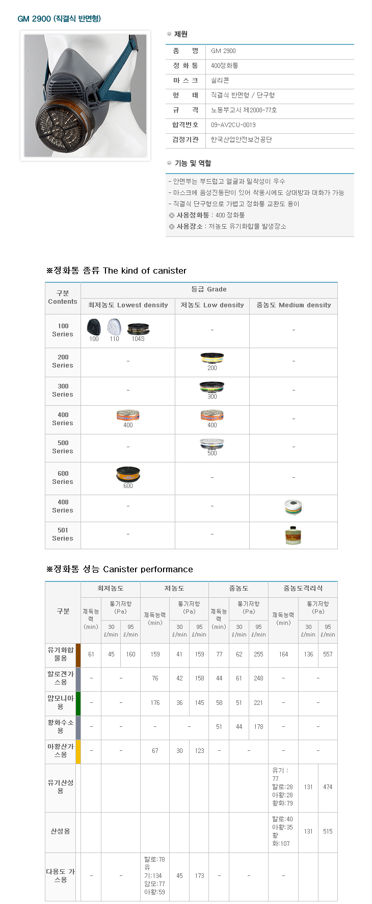 [»ï°ø] Á÷°á½Ä ¹Ý¸éÇü/´Ü±¸Çü »ê¾÷¾ÈÀü ¹æµ¶¸¶½ºÅ©(GM-2900, ½Ç¸®ÄÜ, 400½Ã¸®Áî Á¤È­Åë)=>Á¦Ç°´ÜÁ¾!