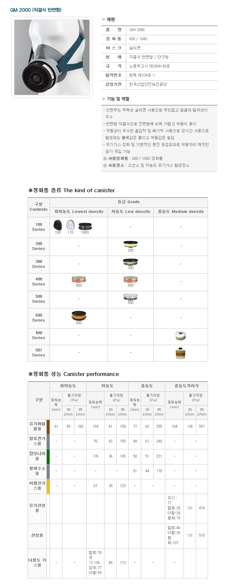 [»ï°ø] Á÷°á½Ä ¹Ý¸éÇü/´Ü±¸Çü »ê¾÷¾ÈÀü ¹æµ¶¸¶½ºÅ©(GM-2000, ¹æµ¶/Àú³óµµ, ½Ç¸®ÄÜ, 600/104S½Ã¸®Áî Á¤È­Åë)=>Á¦Ç°´ÜÁ¾!