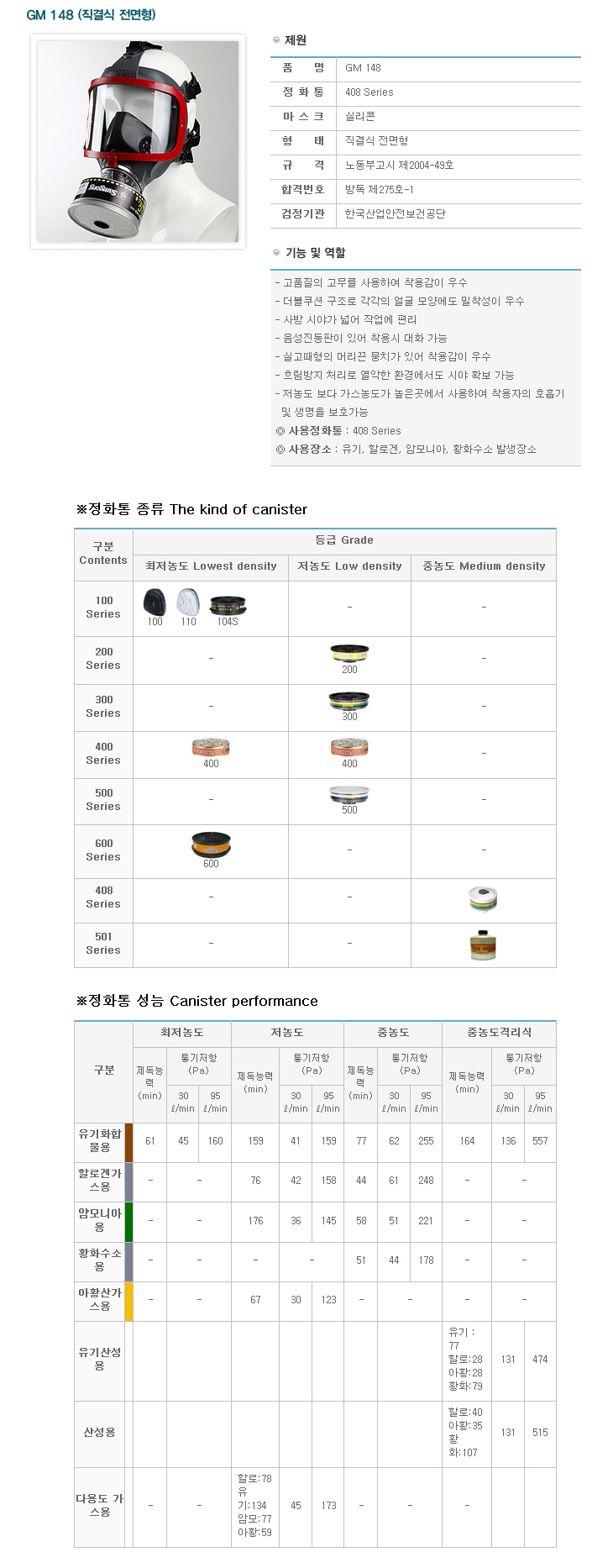 [»ï°ø] Á÷°á½Ä Àü¸éÇü »ê¾÷¾ÈÀü ¹æµ¶¸¶½ºÅ©(GM-148S, ¹æµ¶/Áß³óµµ, ½Ç¸®ÄÜ, 408½Ã¸®Áî Á¤È­Åë)=>Á¦Ç°´ÜÁ¾!