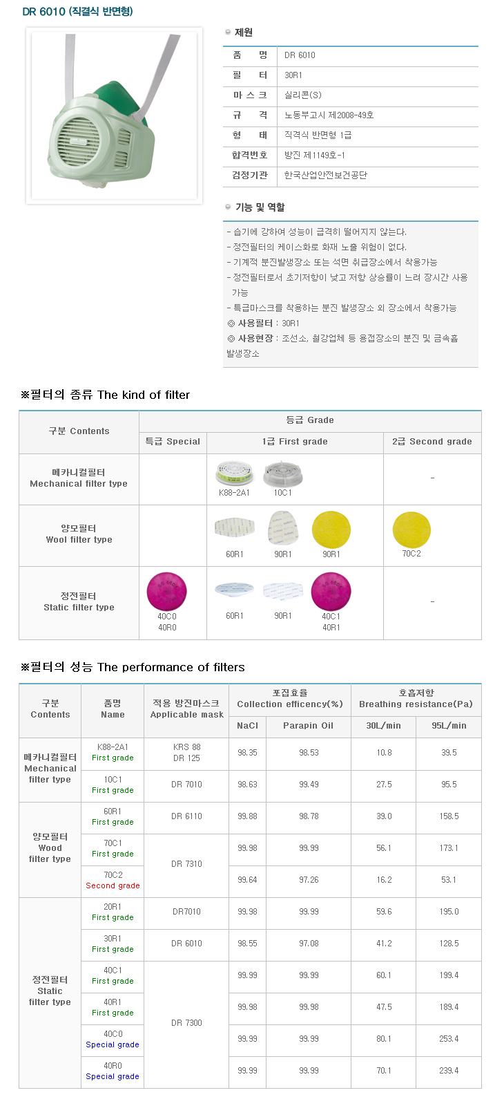 [»ï°ø] Á÷°á½Ä ¹Ý¸éÇü ¹æÁø 1±Þ ¸¶½ºÅ©(DR-6010, 30R1ÇÊÅÍ, Á¶¼±¼Ò/ö°­¾÷ü, ½Ç¸®ÄÜ)=>Á¦Ç°´ÜÁ¾!