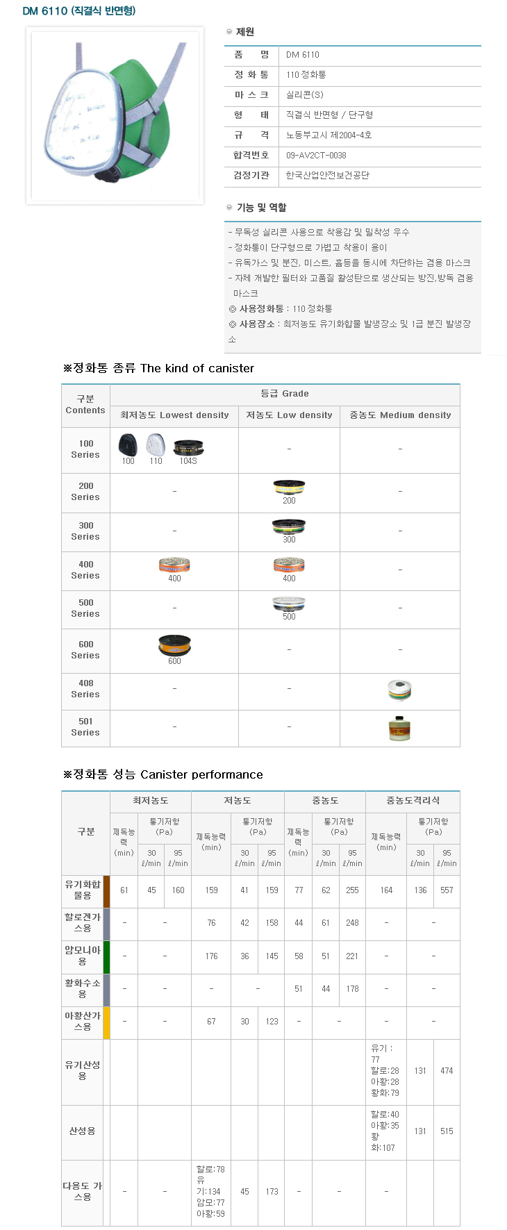 [»ï°ø] Á÷°á½Ä ¹Ý¸éÇü ¹æÁø ¹× ¹æµ¶ ¸¶½ºÅ©(DM-6110, 110Á¤È­Åë, Àú³óµµ À¯±âÈ­ÇÕ¹°/1±ÞºÐÁø ¹ß»ýÀå¼Ò, ½Ç¸®ÄÜ)=>Á¦Ç°´ÜÁ¾!