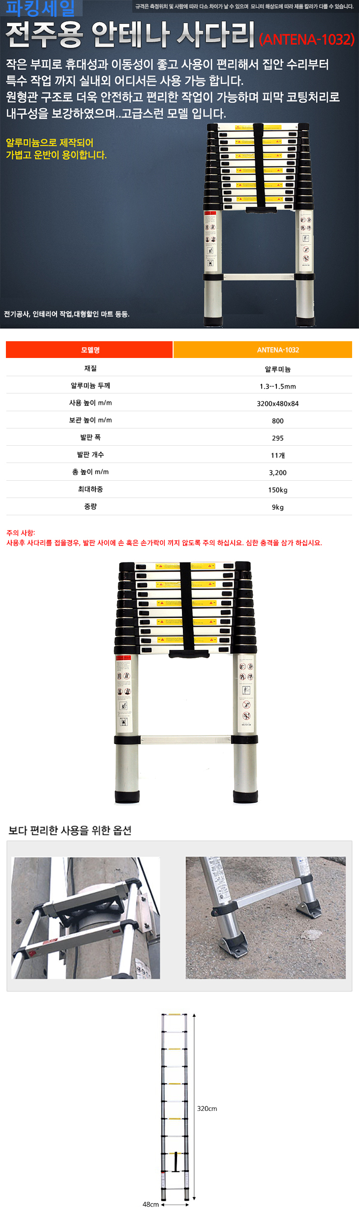 [SG] ÀüÁÖ¿ë ¾ÈÅ׳ª »ç´Ù¸®(ANTENA-1032, ÆîÄ£³ôÀÌ:3200mmx Æø:480mm x ÇϴܱâµÕ:84ÆÄÀÌ)(»ç´Ù¸® + Àü½ÅÁÖ¿ë º§Æ® Æ÷ÇÔ)