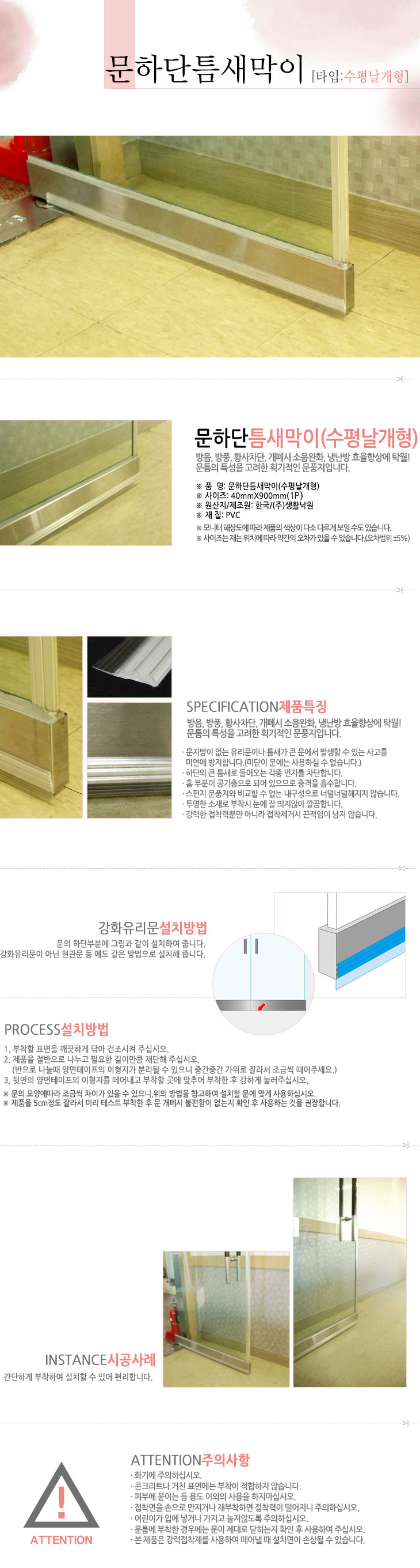 [LP] Åõ¸í¾ÈÀü¿¡¾îÄí¼ÇÅ×ÀÌÇÁ(¼öÆò³¯°³Çü, ¹®ÇÏ´Ü Æ´»õ¸·ÀÌ, 40mm x 900mm, PVC, ¹æÀ½/¹æÇ³/Ȳ»çÂ÷´Ü/¼ÒÀ½¿ÏÈ­/³Ã³­¹æ È¿À²Çâ»ó)=>Á¦Ç°´ÜÁ¾!