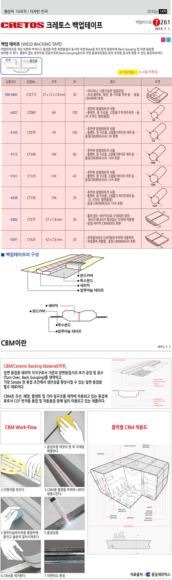 [CRETEC] ¹é¾÷Å×ÀÌÇÁ(CT06R, 6ÆÄÀÌ, CRETOS ¹é¾÷Å×ÀÌÇÁ)(Weld Backing Tape)