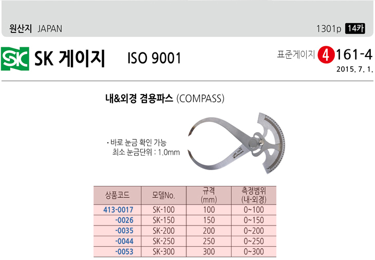 [SK] ³»¿Ü°æ °â¿ë ÄÞÆÄ½º(SK-100, 100mm, 0~100mm)(Compass)
