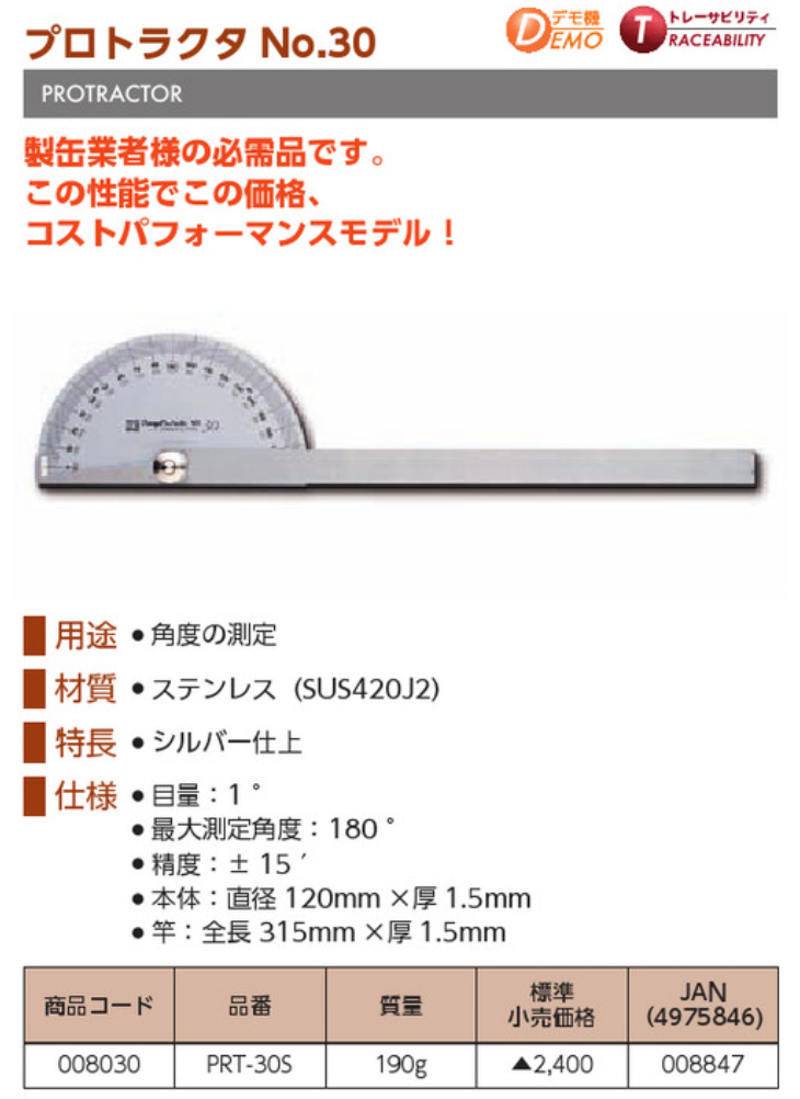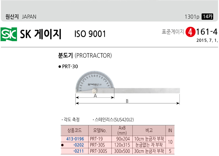[SK] ºÐµµ±â(RPT-30S, 120x315mm, ´«±Ý¾ø´Â ÀÚ ºÎÂø)(Protractor)