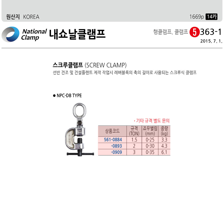 [³»¼î³¯Å¬·¥ÇÁ] ½ºÅ©·ç Ŭ·¥ÇÁ(NPC-DB 1.5Åæ, ¼±¹Ý°ÇÁ¶/°Ç¼³Ç÷£Æ® ÀÛ¾÷)(Screw Clamp)