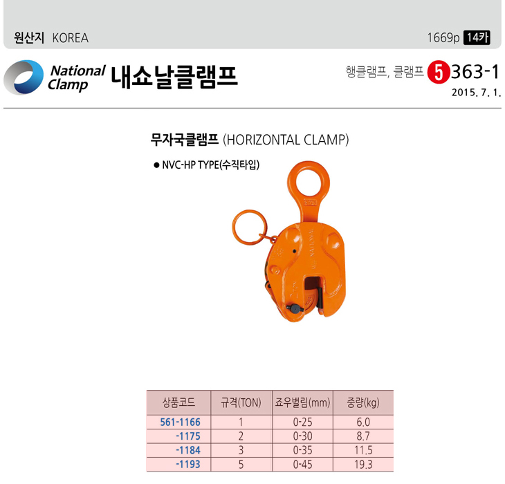 [³»¼î³¯Å¬·¥ÇÁ] ¹«ÀÚ±¹ Ŭ·¥ÇÁ(NVC-HP ¼öÁ÷ŸÀÔ, 3Ton)(Horizontal Clamp)