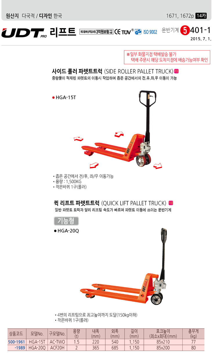 [UDT] »çÀÌµå ·Ñ·¯ ÆÄ·¿Æ® Æ®·°(HGA-15T/AC-TWO, 1.5Ton, ÀüÈÄÁ¿ì À̵¿Çü)(SIde Roller Pallet Truck)