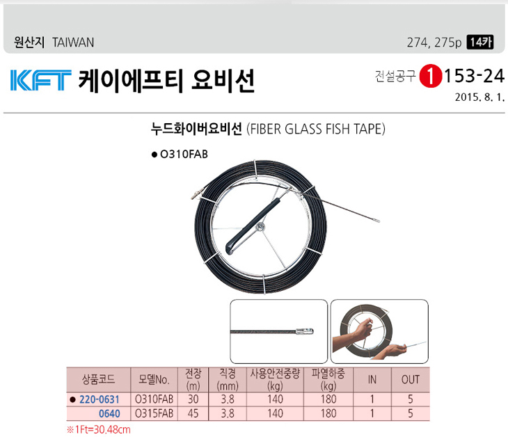 [KFT] ÄÉÀÌ¿¡ÇÁƼ ´©µåÈ­À̹ö ¿äºñ¼±/ÀÎÃâ¼±/³ëºñ¼±/·Îºñ¼±(O310FAB/O315FAB ±æÀ̼±Åð¡´É, 3.8ÆÄÀÌ, ¾ÈÀüÁß·®:140Kg)(Fiber Glass Fish Tape)