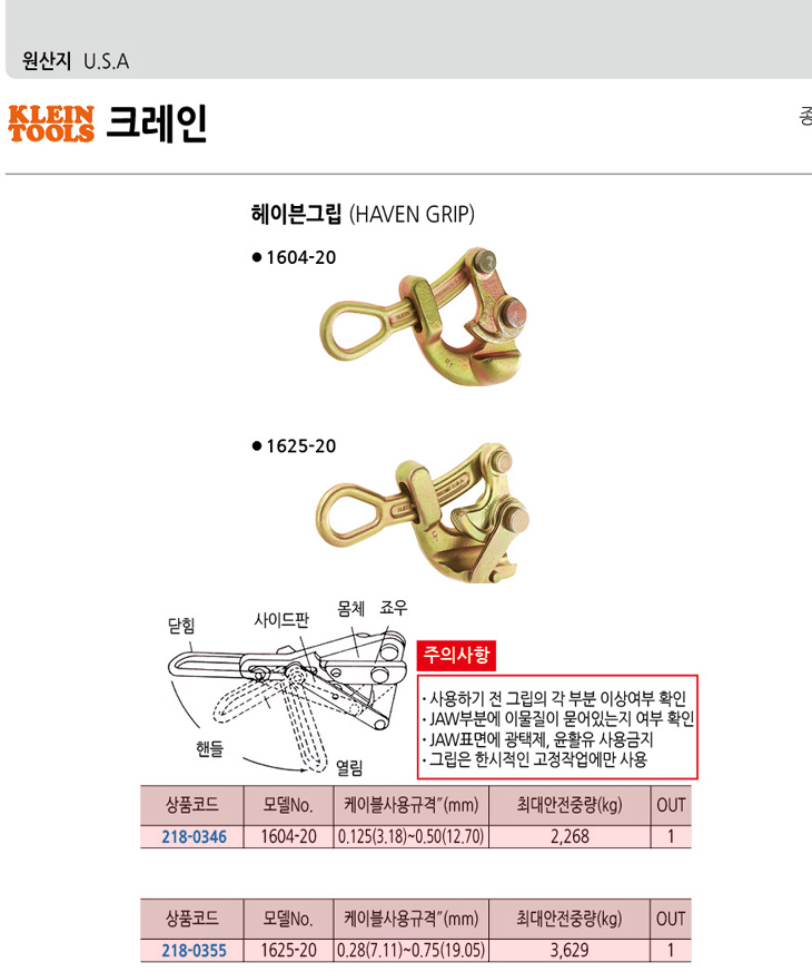 [Å©·¹ÀÎ] ÇìÀÌºì ±×¸³(1625-20, ÄÉÀ̺í±Ô°Ý:0.28~0.75ÀÎÄ¡/7.11~19.05mm, ÃÖ´ë¾ÈÀüÁß·®:3629Kg)(Haven Grip)