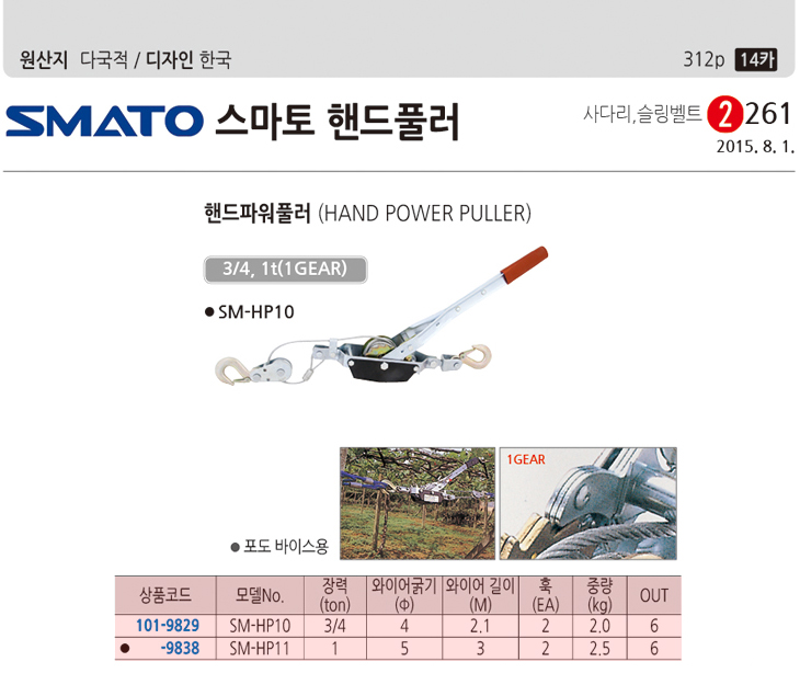 [½º¸¶Åä] ÇÚµåÇ®·¯/ÇÚµå ÆÄ¿ö Ç®·¯(SM-HP11, 1TON, 1Gear, Æ÷µµ¹ç ¹ÙÀ̾¿ë)(Hand Power Puller)