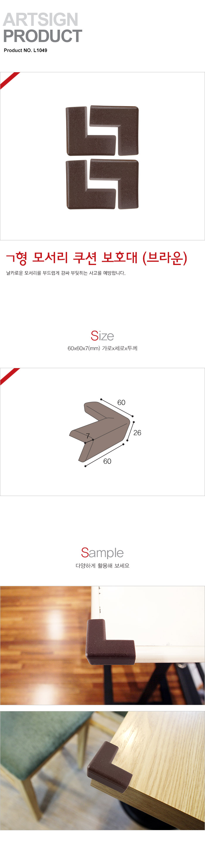 [AT] ¤¡Çü¸ð¼­¸® Äí¼Çº¸È£´ë(L1049, ºê¶ó¿î, 60x60x7mm, 4°³¹­À½)