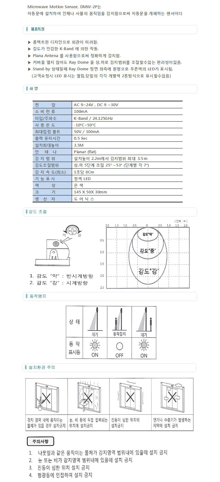 [DR] »óºÎ ÈÄ·¹ÀÓ/¹®Æ² ÃëºÎÇü¸¶ÀÌÅ©·Î¿þÀÌºê ¸ð¼Ç¼¾¼­ ½ÅÇü(DMW-2P, AC 9~24V/DC 9~30V, ÀÚµ¿¹®¼¾¼­/µµ¾î¼¾¼­)