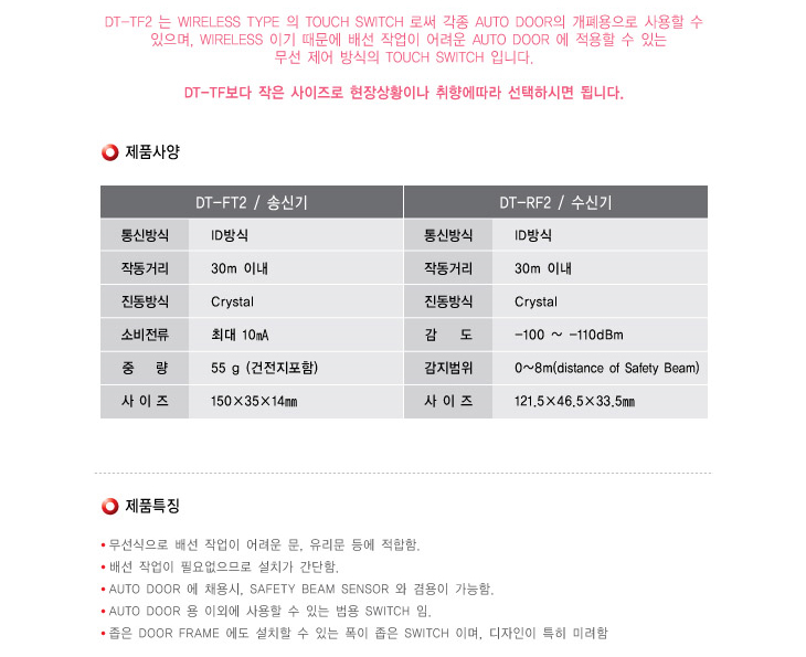 [SD] ¹«¼±ÅÍÄ¡½ºÀ§Ä¡/ÀÚµ¿¹®½ºÀ§Ä¡/¹«¼±Åð½Ç¹öÅÏ ¼ö½Å±â(DT-TF2 ¼ö½Å±â, ÀÛµ¿°Å¸®:30¹ÌÅÍ)
