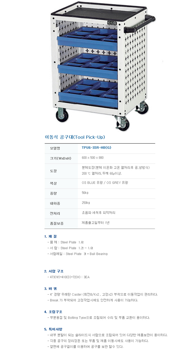[¿À¼º] À̵¿½Ä°ø±¸´ë/À̵¿Çü°ø±¸ÇÔ(TPU6-3SR-HB, 600 x 500 x 880mm)