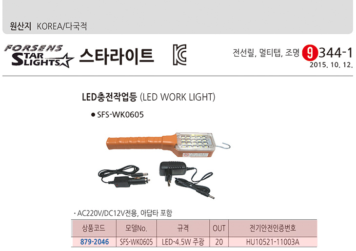 [½ºÅ¸¶óÀÌÆ®] LEDÃæÀüÀÛ¾÷µî (SFS-WK0605, LED 4.5Watt ÁÖ±¤ ÃæÀü½ÄÀÛ¾÷µî)=>Á¦Ç°´ÜÁ¾!