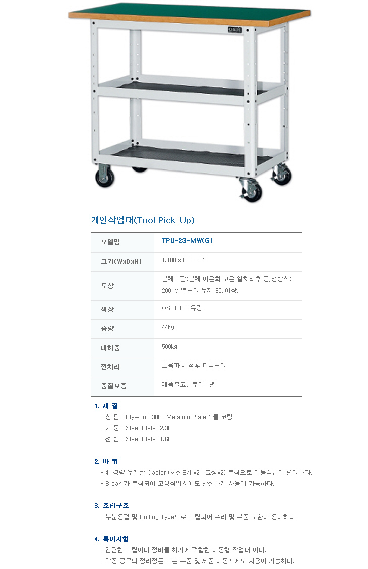 [¿À¼º] À̵¿½Ä°ø±¸´ë/À̵¿Çü°ø±¸ÇÔ/°³ÀÎÀÛ¾÷´ë(TPU-2S-MW, 1100 x 600 x 910mm)
