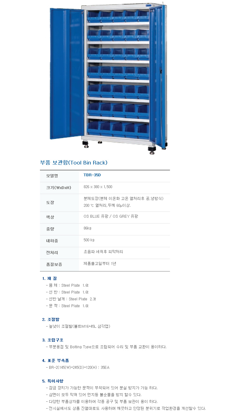 [¿À°ø] ºÎǰº¸°üÇÔ/ºÎǰº¸°ü¹Ú½º(TBR-35D, 826x380x1500mm, °íÁ¤Çü)(Tool Bin Rack)