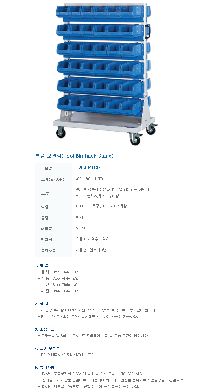 [¿À°ø] ºÎǰº¸°üÇÔ/ºÎǰº¸°ü¹Ú½º(TBRS-M1, 950x600x1450mm, À̵¿Çü)(Tool Bin Rack)