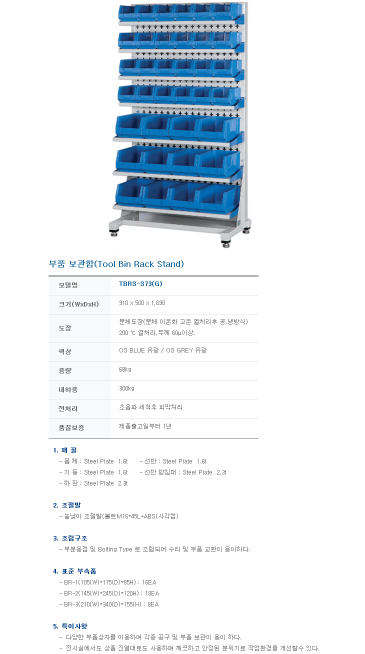 [¿À°ø] ºÎǰº¸°üÇÔ/ºÎǰº¸°ü¹Ú½º(TBRS-S73, 910x500x1690mm, °íÁ¤Çü)(Tool Bin Rack)