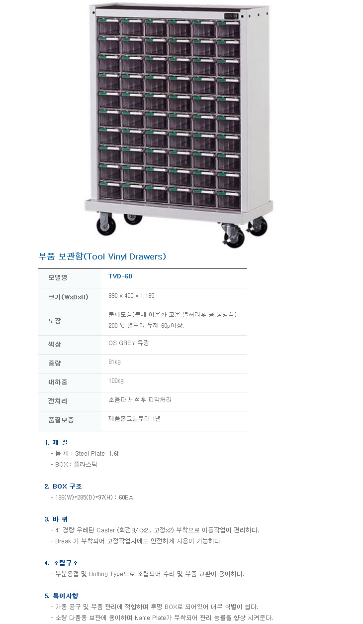 [¿À°ø] ÀüÀÚ ºÎǰº¸°üÇÔ/ºÎǰº¸°ü¹Ú½º(TVD-60, 890x400x1185mm, À̵¿Çü)(Plastic Drawers Storage)