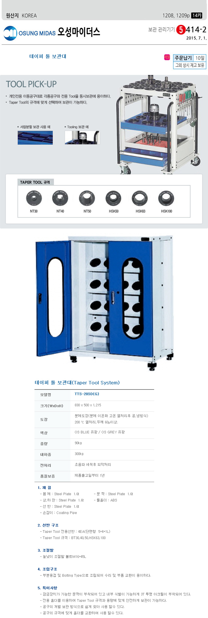 [¿À¼º] Å×ÀÌÆÛÅøº¸°ü´ë/Å×ÀÌÆÛÅøº¸°üÇÔ(TTS-20SD, 830x500x1215mm, °íÁ¤Çü)(Taper Tool System)