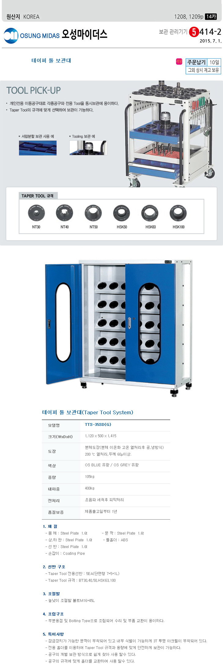 [¿À¼º] Å×ÀÌÆÛÅøº¸°ü´ë/Å×ÀÌÆÛÅøº¸°üÇÔ(TTS-35SD, 1120x500x1415mm, °íÁ¤Çü)(Taper Tool System)
