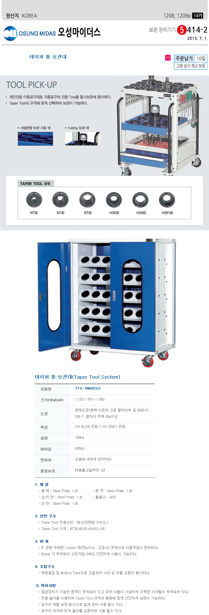 [¿À¼º] Å×ÀÌÆÛÅøº¸°ü´ë/Å×ÀÌÆÛÅøº¸°üÇÔ(TTS-70MD, 1120x700x1500mm, À̵¿Çü)(Taper Tool System)