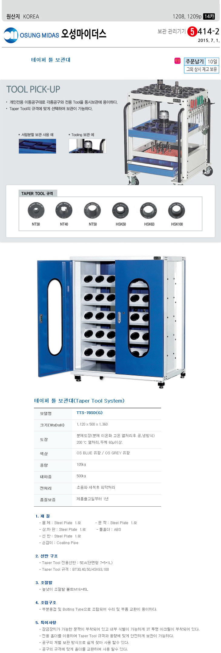 [¿À¼º] Å×ÀÌÆÛÅøº¸°ü´ë/Å×ÀÌÆÛÅøº¸°üÇÔ(TTS-70SD, 1120x700x1360mm, °íÁ¤Çü)(Taper Tool System)