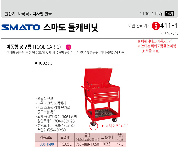 [½º¸¶ÅäÅøÄɺñ³Ý] À̵¿Çü °ø±¸ÇÔ(TC325C, 763x488x1050mm, ¹ÌÁ¶¸³¹ß¼Ûǰ)(Tool Carts)=>Á¦Ç°´ÜÁ¾!