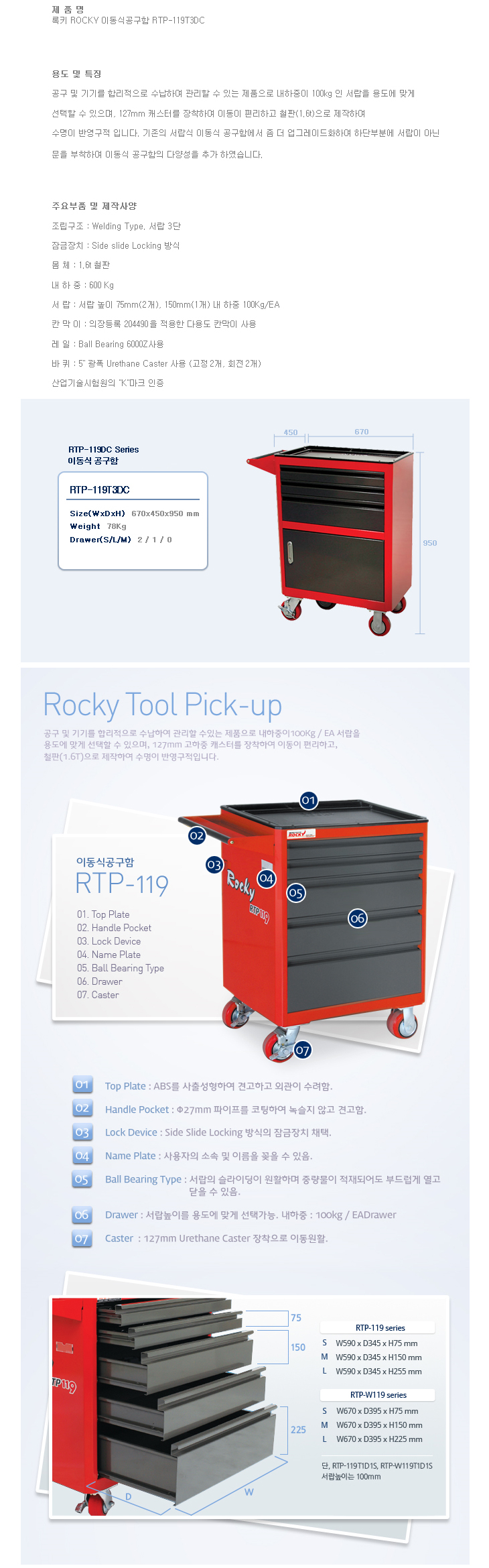 [·ÏŰ/ROCKY] À̵¿½Ä°ø±¸ÇÔ(RTP-119T3DC, 670X450X950mm)(Tool Pick up)