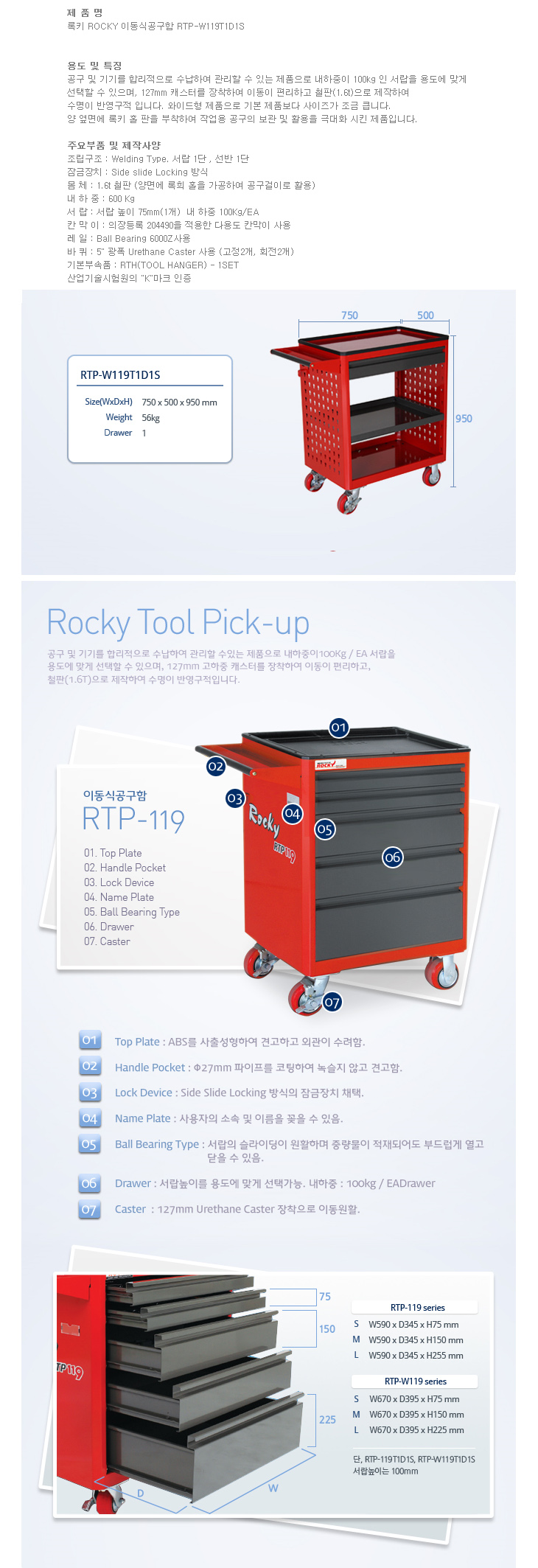 [·ÏŰ/ROCKY] À̵¿½Ä°ø±¸ÇÔ(RTP-W119T1D1S, 7500x500x950mm)(Tool Pick up)