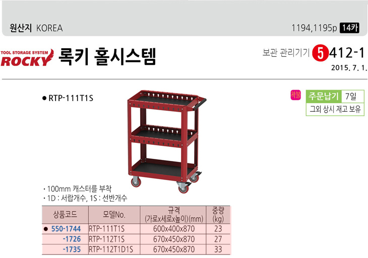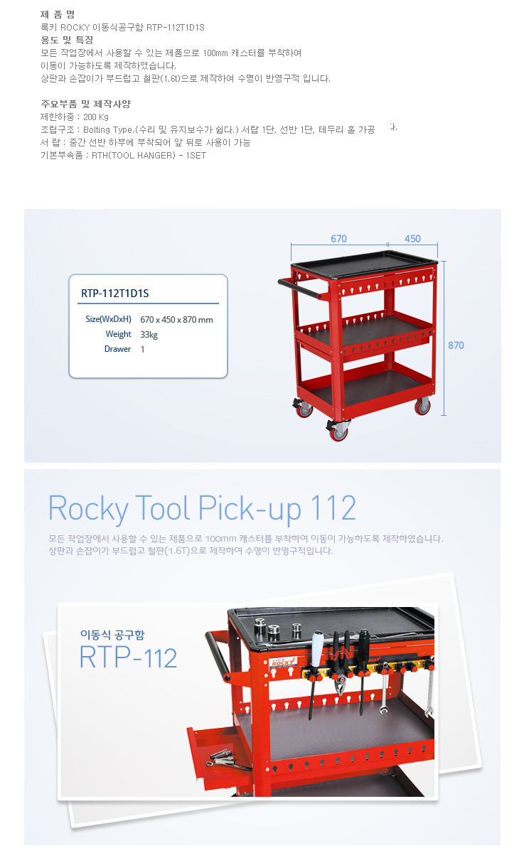[·ÏŰ/ROCKY] À̵¿½Ä°ø±¸ÇÔ(RTP-112T1D1S, 670x450x870mm)(Tool Pick up)