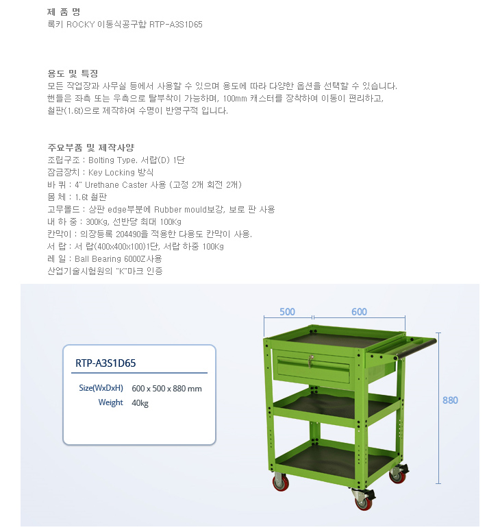 [·ÏŰ/ROCKY] À̵¿½Ä°ø±¸ÇÔ(RTP-A3S95, 900x500x880mm)(Tool Pick up)