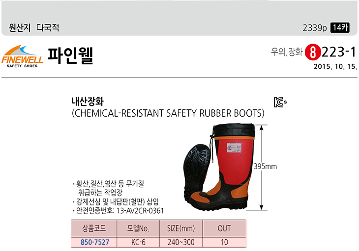 [ÆÄÀÎÀ£/ºÎ±¹] ³»»êÀåÈ­(KC-6,¾ÈÀü°ø´ÜÇü½ÄÀÎÁõ,Ȳ»ê/Áú»ê/¿°»ê µî ¹«±âÁú Ãë±Þ ÀÛ¾÷Àå¿ë)(Safety Rubber Boots Cuff)
