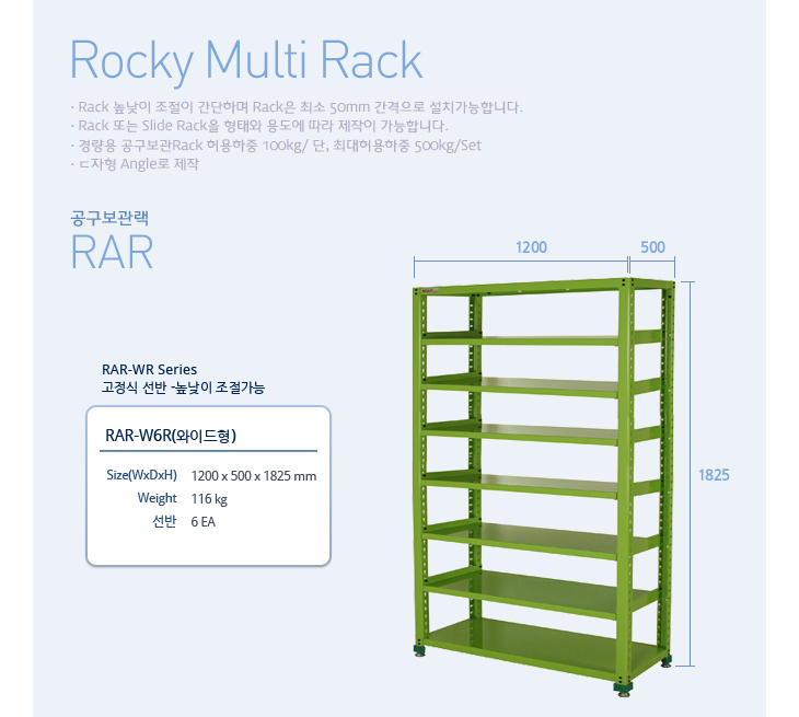 [·ÏŰ/ROCKY]°ø±¸º¸°ü·¢(RAR-W6R, ¿ÍÀÌµå °íÁ¤½Ä¼±¹Ý 6°³, 1200x500x1825mm)(Multi Rack)